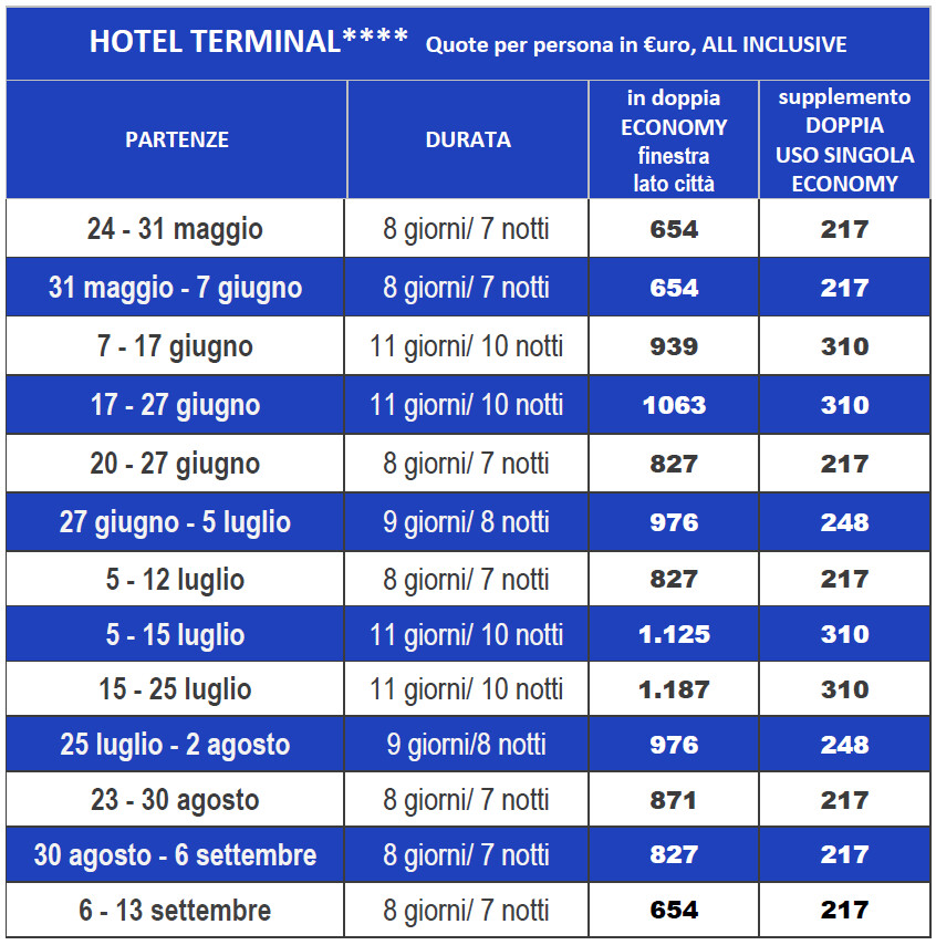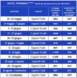 L’HOTEL TERMINAL PALACE 4****, situato in prima fila sul mare, dispone di piscina, angolo idromassaggio con potenti getti massaggianti (ingresso gratuito al mattino), Diamond Spa con percorso benessere, sauna finlandese, bagno turco, cromoterapia, aromaterapia, trattamenti estetici, massaggi, area fitness, WiFi gratuito in tutto l’albergo, quotidiani a disposizione, Lounge Bar.