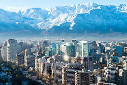 Santiago del Cile, circondata dalle cime innevate della Cordigliera delle Ande e della Cordigliera della Costa