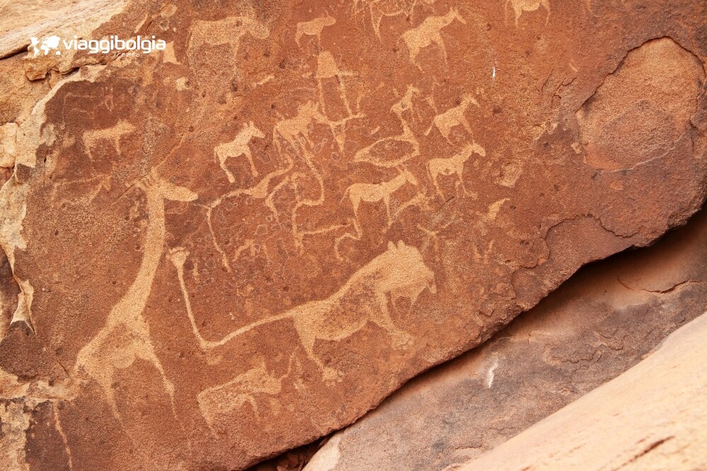 Il museo all’aperto di Twyfelfontein, "la sorgente insicura", fu, senza ombra di dubbio, il punto d'incontro di una moltitudine di animali e di una popolazione di cacciatori. Una realtà illustrata da mirabili incisioni che raffigurano, per lo più, animali cacciati, impronte degli stessi, segni astratti, simboli, tutte impresse sulle enormi rocce rosse. Pare che alcuni esempi di questa magnifica arte rupestre risalgano a 8.000 anni fa e che gli autori siano stati di origine Khoi-San, in qualche modo gli antenati degli attuali Boscimani San. Lo scopo di queste rappresentazioni rupestri è considerato dagli esperti un rituale propiziatorio. Nel 2007 è stato riconosciuto patrimonio mondiale dell’umanità dall’UNESCO.