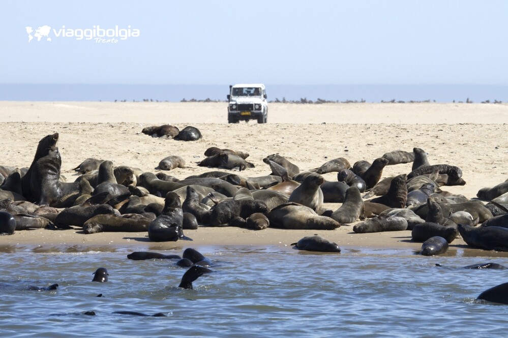 Prima colazione e partenza alla volta della baia di Walvis Bay. Inizio della crociera nella baia per incontrare la fauna marina acquatica ed ittica. Le otarie amano salire sulle imbarcazioni, i pellicani volteggiano sulla baia, i fenicotteri rosa rendono le secche coloratissime. Spesso si possono anche vedere squali, balene ed orche. Questa escursione dura tutta la mattinata ed è meraviglioso ammirare il grande deserto dal mare. Si procede con mezzo 4 x 4 lungo un percorso tra le dune e la spiaggia, fermandoci nei punti più spettacolare della laguna di Sandwich Harbour. È uno dei luoghi più suggestivi del Paese. Il paesaggio è dominato da enormi dune di sabbia bianca: sono le dune "giovani", dove i minerali di ferro non si sono ancora ossidati. Il cuore di questa zona è una laguna in cui vivono tantissimi uccelli che si possono osservare da molto vicino. La guida-autista conduce la jeep sulla battigia e sulle altissime dune. Un percorso emozionante e ricco di brividi.