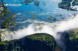 Il fiume Zambesi, largo 2 km, si getta per più di 100 metri in una gola ripidissima formando il così detto «fumo tonante», come gli indigeni chiamano le cascate, meraviglia della natura a cavallo tra Zambia e Zimbabwe.