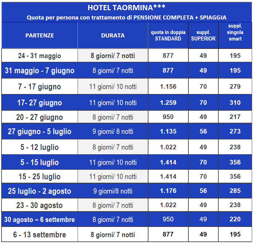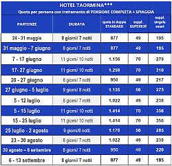L’HOTEL TAORMINA 3***, bell’albergo, gestito dai proprietari; a soli 100 mt dal mare, a pochi passi dal grazioso centro di Porto d’Ascoli e ottimamente collegato con autobus al centro di San Benedetto, raggiungibile anche in bici con la ciclabile o con una passeggiata sul bellissimo lungomare affiancato da palme; dispone di piscina con 3 vasche adulti/bambini e idromassaggio, e solarium, area giochi e saletta bimbi, WiFi, internet point, charge station, angolo biblioteca, quotidiano nella hall, bici gratuite, area benessere a pagamento; borsa mare omaggio e servizio teli mare per la durata del soggiorno; dal 5 giugno al 5 settembre animazione adulti/ragazzi e miniclub dai 3 anni mattina e pomeriggio, al 6° piano terrazza panoramica Tao Wellness, a pagamento, con zona relax, 2 jacuzzi, solarium, doccia sensoriale; all’interno sala massaggi, bagno turco, sauna finlandese.