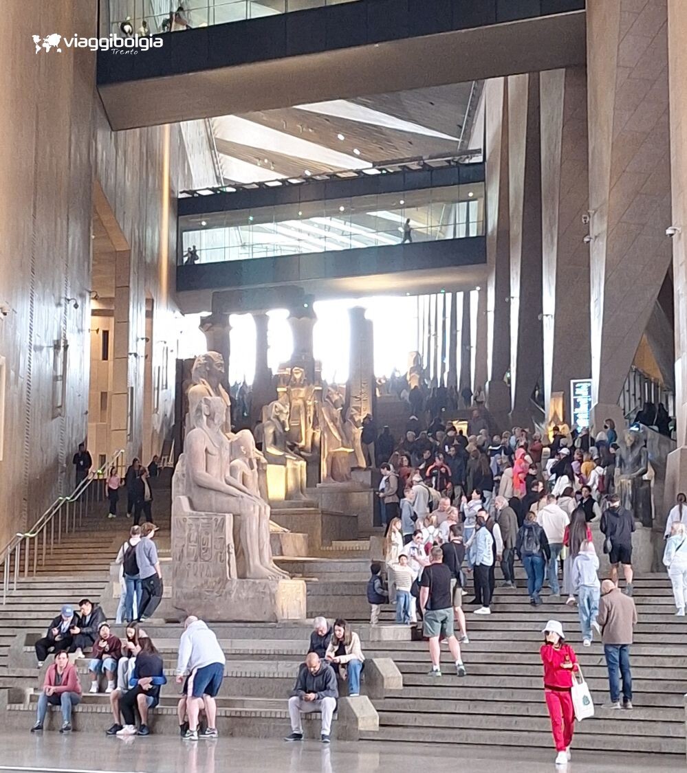 Durante il tour, la giornata al Cairo dedicata al GEM era una di quelle cerchiate in rosso. Nel programma lo presentavamo come il nuovo Museo Egizio, finalmente aperto, progettato con un’architettura moderna in dialogo con l’area di Giza: dal vivo, questa promessa si percepisce tutta.