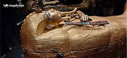 Il sarcofago dorato di Tutankhamon, parte del tesoro composto da oltre 5.000 oggetti
