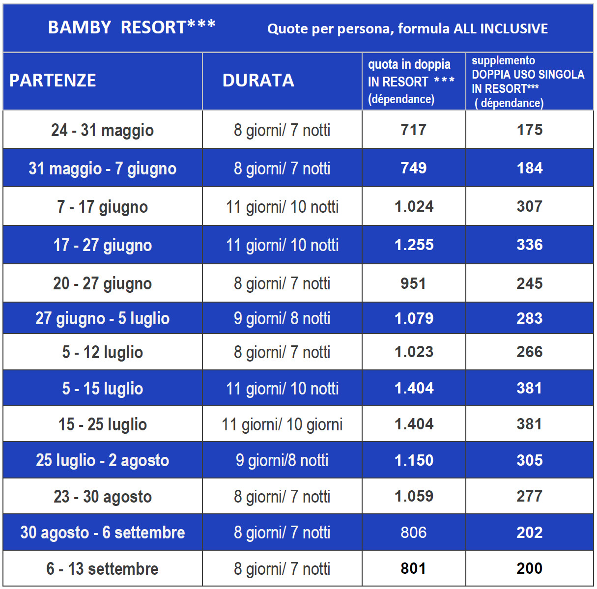 A Pinarella di Cervia, in un’oasi di verde, l’HOTEL BAMBY 4**** a pochi passi dalla splendida spiaggia di sabbia finissima da cui lo separano solo la rigogliosa pineta e il lungomare; il BAMBY RESORT*** si trova a 20 metri dall’edificio principale, con il quale condivide tutti i comfort, piscina per adulti e bambini, bici gratuite, mini-club, animazione.