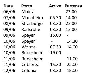Dopo pranzo partenza per la navigazione di rientro verso Mainz.