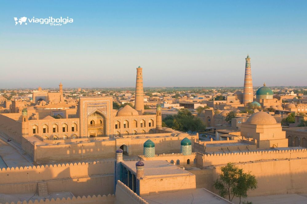Khiva, piccola e remota città Patrimonio dell’Unesco con un affascinante e ottimamente conservato nucleo storico. Costruita dove si incontrano il deserto del Kizilum e il deserto del Karakum in Turkmenistan, Khiva in passato appariva come un miraggio per le carovane che attraversavano l’Asia. La vecchia città murata di Khiva è chiamata Itchan Kala ed è un vero e proprio scrigno di tesori, un’oasi di pace e ricchezza. Attraversata la porta principale, Ota-Darvoza, iniziamo le visite: